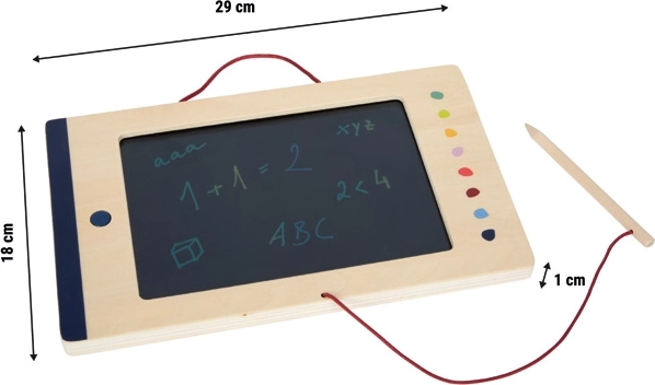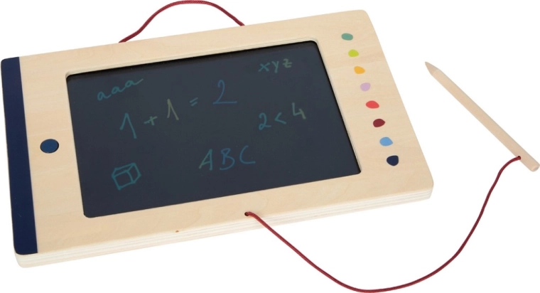 Schrijf, teken en leer overal met de LCD-tekentablet small foot Educate voor kinderen. Kleurendisplay, eenvoudig wissen met één knop en een vergrendeling tegen onbedoeld wissen maken het de ideale hulp voor peuters en jonge schoolkinderen. Licht, duurzaam en papierloos, met stylus aan een koord en een praktisch handvat voor makkelijk meenemen.