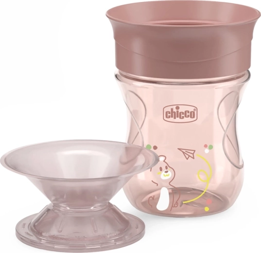 De Chicco Perfect Cup 360° is een praktische trainingsbeker die zelfstandigheid en goede drinkgewoonten stimuleert. De speciale siliconen membraan wordt geactiveerd door aanraking met de lippen en maakt drinken vanaf elke kant van de rand mogelijk – als uit een glas, maar zonder rommel. Ergonomische handvatten zijn gemakkelijk vast te houden, ook voor kleine handjes.