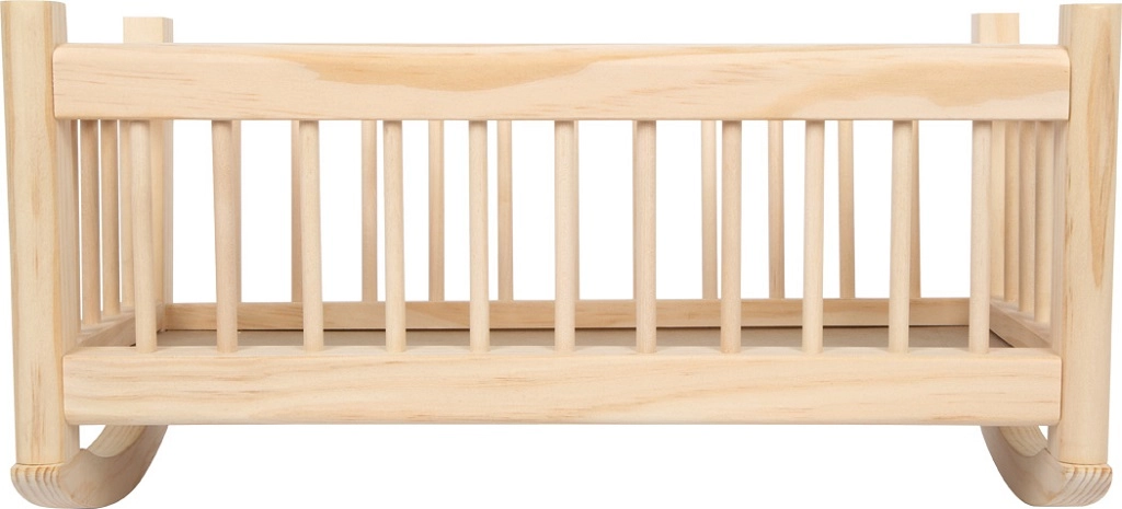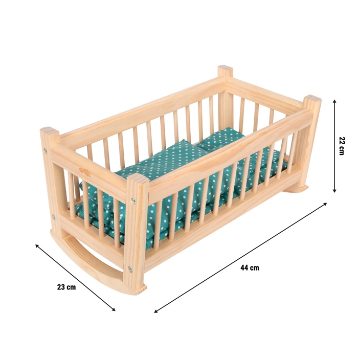 De wieg blinkt uit door de veilige afwerking met afgeronde randen en hoogwaardige materialen voor een lange levensduur. Kinderen leren tijdens het rollenspel eenvoudig dagelijkse rituelen en zorgzaamheid, terwijl ze tegelijk hun fijne motoriek en ritmegevoel oefenen.