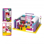 Deze kleurrijke bouwset brengt een moderne schoonheidssalon met etalages, spiegels en zitgedeelte, waar kinderen verhalen kunnen naspelen van visagisten en klanten. Dankzij 3 figuurtjes en rijke details ontstaan steeds nieuwe scènes – van kapsels stylen tot een ritje op de roze fiets.