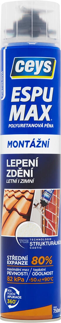 CEYS montage- en lijmschuim is compact, dicht en ontworpen voor betrouwbare verlijming binnen en buiten. Dankzij de middelmatige expansie van 80% zorgt het voor een nauwkeurige en schone verbinding zonder overmatige uitzetting. De gehomologeerde formule is ontwikkeld voor het bevestigen van dakpannen met maximale veiligheid en langdurige bestendigheid tegen weersinvloeden.