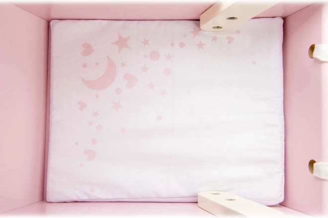 Comfort voor poppen en knuffels dankzij het zachte bedje en de stoffen hemel voor stijlvol “slapen” onderweg.