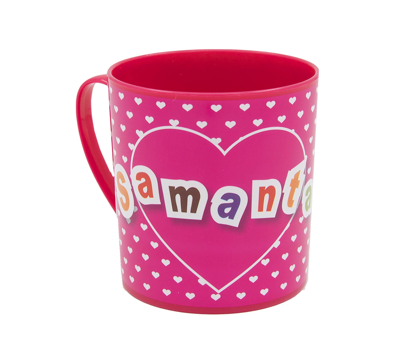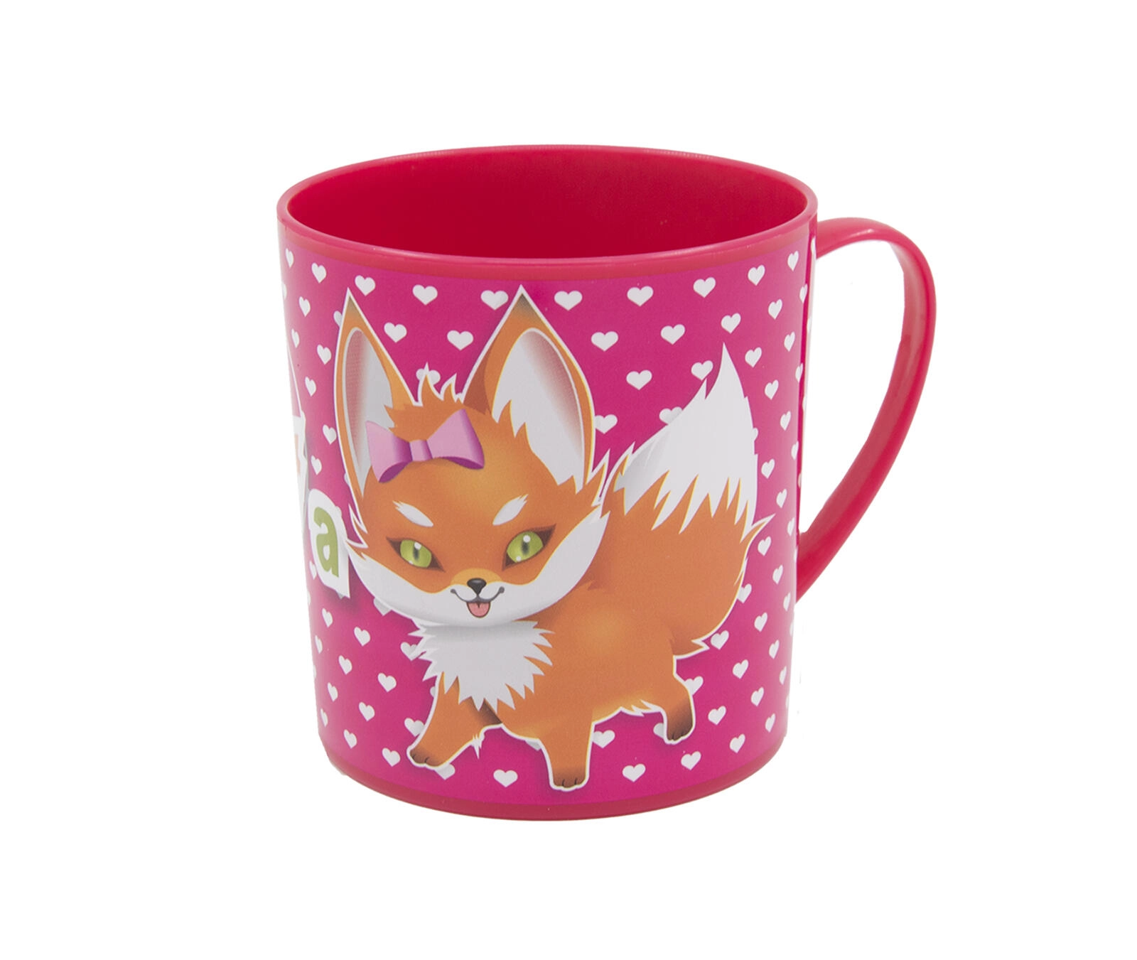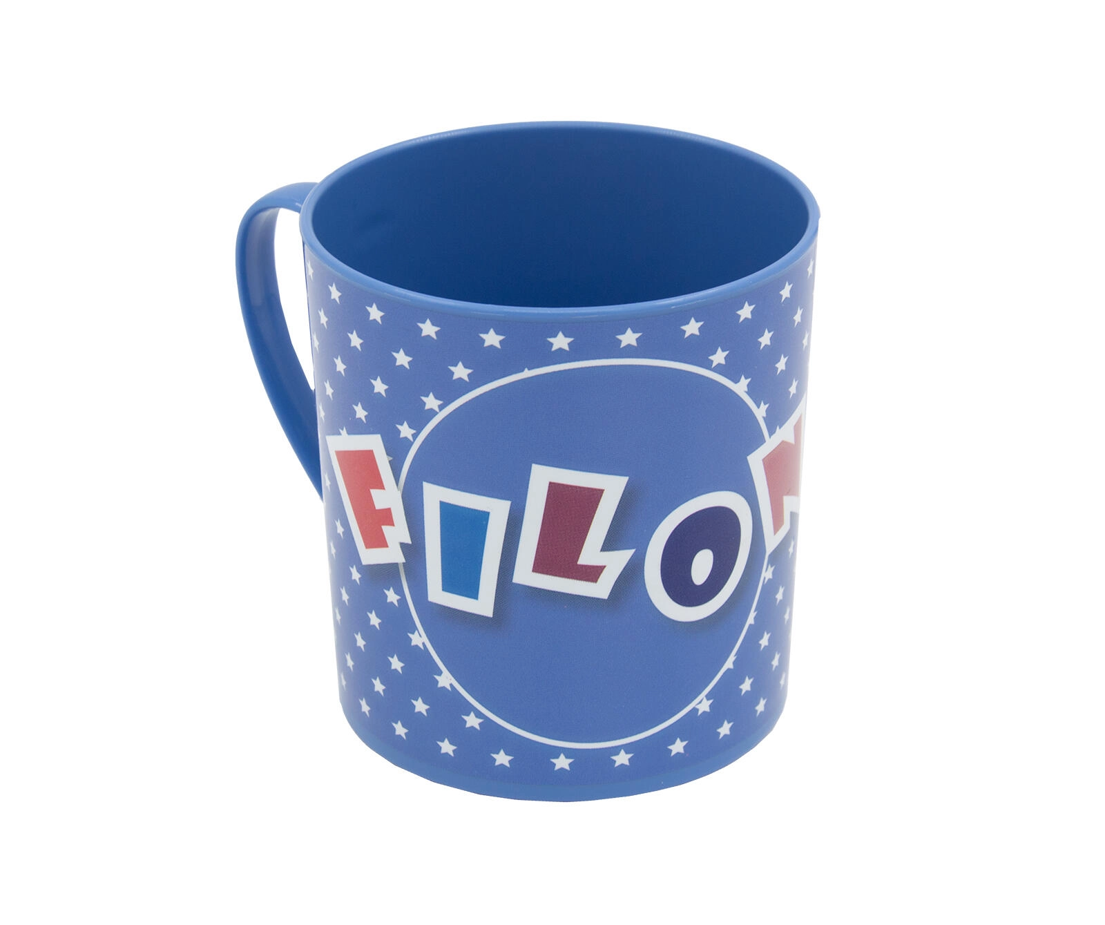Lichte en stevige kunststof kinderbeker van 380 ml met een schattige print, ideaal voor dagelijks drinken. Dankzij het praktische oor ligt hij goed in kinderhandjes, is makkelijk schoon te maken en geschikt voor warme en koude dranken. Verkrijgbaar in roze en blauw.
