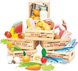 Ontdek de magie van winkeltje spelen met een houten kist vol groenten van LE TOY VAN. Zorgvuldig vervaardigde stukjes zoals wortel, radijs, champignons en courgette stimuleren verbeelding, fijne motoriek en leren over gezonde voeding. Gemaakt van duurzaam hout en geschilderd met niet-giftige verf op waterbasis – een veilige keuze voor kleine handjes.