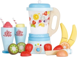 Deze stijlvolle houten set uit de Honeybake-collectie verandert elke kinderkeuken in een smoothiebar. Kinderen kunnen veilig fruit “snijden” met klittenband, de blenderkan vullen en heerlijke drankjes serveren in twee bekers met rietje. De realistische details stimuleren rollenspel, ontwikkeling van de fijne motoriek en cognitieve vaardigheden.