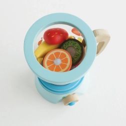 Blender met afneembare kan, 6 stuks snijfruit met klittenband, houten mesje, 2 glazen met rietjes en decoratie