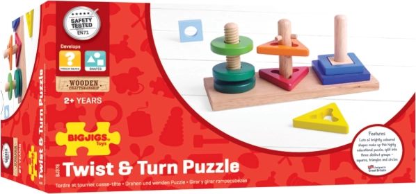 Dit slimme houten speelgoed motiveert kinderen om te ontdekken. De stukjes worden op drie verschillende pinnetjes geplaatst, waarbij sommige een draai of juiste oriëntatie vereisen. Zo trainen kinderen spelenderwijs vingervaardigheid, geduld en ruimtelijk inzicht.