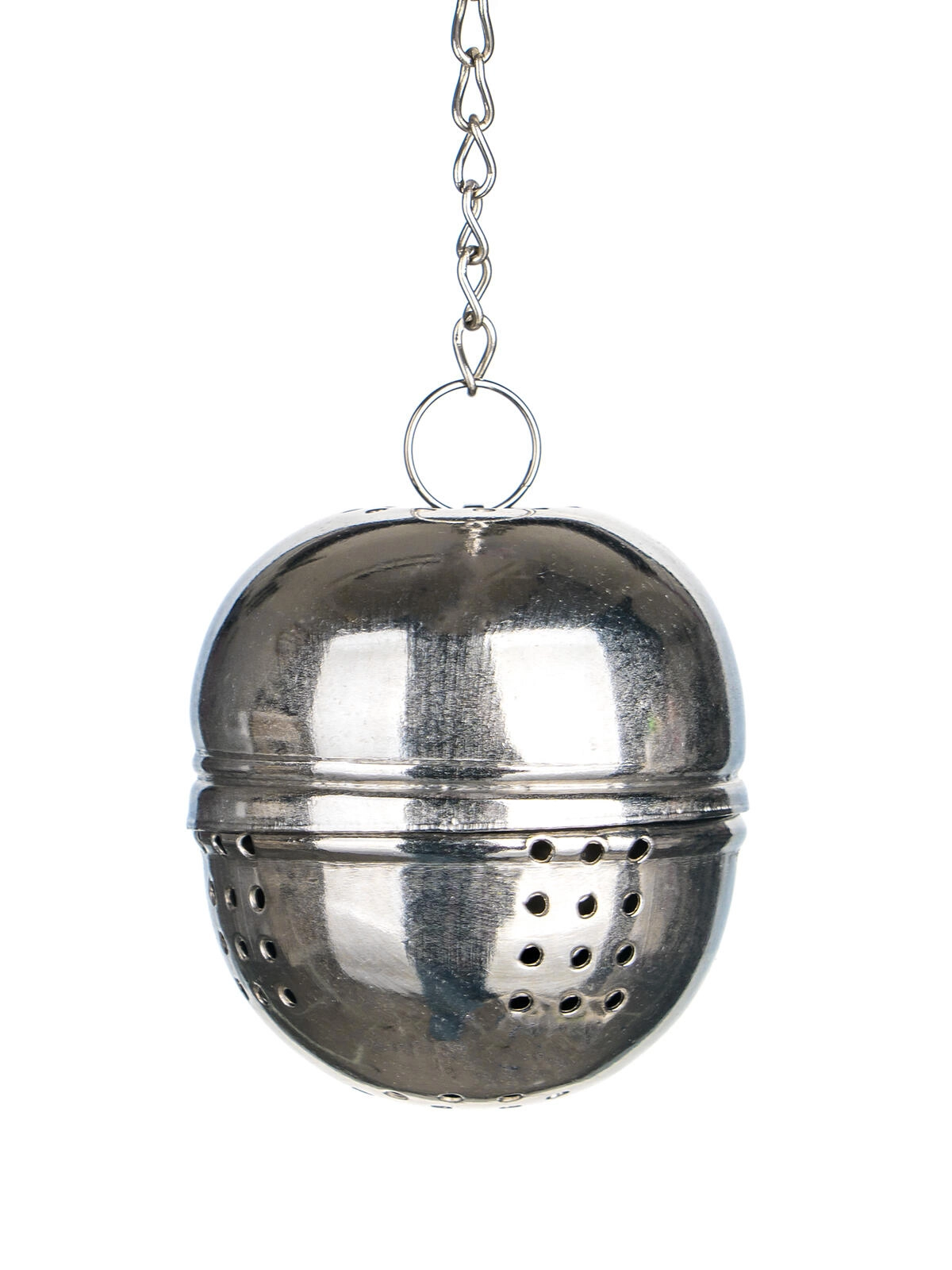 Duurzame roestvrijstalen zeef met kettinkje voor comfortabel trekken van losse thee zonder restjes in het kopje. Makkelijk te reinigen en geschikt voor hergebruik.