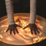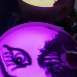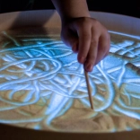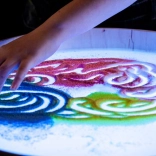 Op het blad kun je tekenen met vingers, kwasten en kunststof tools, werken met zand, steentjes en andere materialen zonder rommel dankzij de verhoogde rand. De tafel dient ook als lichtscène voor een klein theater, decoratieve verlichting in de kinderkamer of als therapeutisch hulpmiddel voor de ontwikkeling van kleurwaarneming, vormen en patronen.