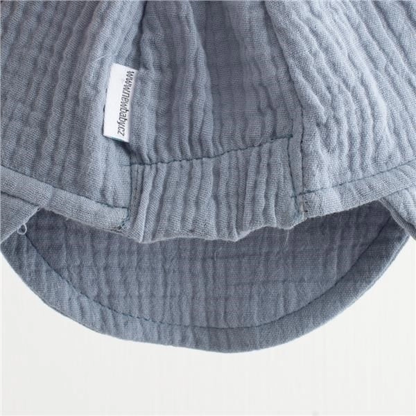 De praktische klep zorgt voor aangename schaduw en beschermt ogen en gezicht tegen fel zonlicht. De mousselinestructuur is niet alleen prettig aan te raken, maar ook zeer duurzaam – met elke wasbeurt wordt het materiaal zachter, terwijl het zijn vorm en functionaliteit behoudt. Een uitstekende keuze voor de zomer, voor dagelijks gebruik in de kinderwagen en op de speelplaats.