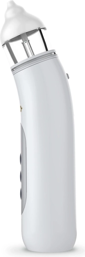 Voor een rustiger verzorgingsmoment is de aspirator uitgerust met gekleurde LED-verlichting en drie melodieën die helpen het kind af te leiden en stress te verminderen. Het transparante reservoir vergemakkelijkt de controle van de vulling en snel legen, terwijl de zachte, verwisselbare opzetstukken maximaal comfort bieden.