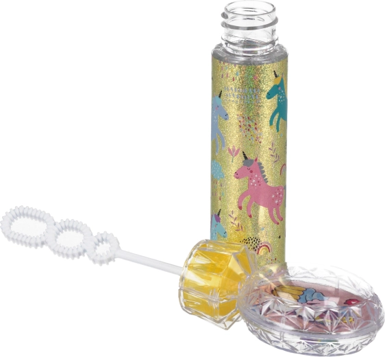Prikkel de fantasie van kinderen met een bellenblaas met eenhoornmotief. Eenvoudig in gebruik, licht en praktisch verpakt met een inhoud van 36 ml – de perfecte metgezel voor buiten en onderweg. Dompel de applicator in de vloeistof en blaas – in een oogwenk verschijnen tientallen sprankelende bellen.