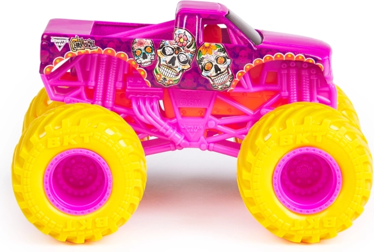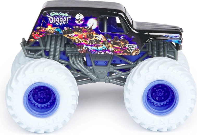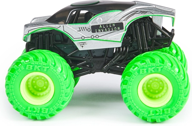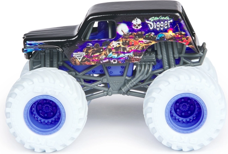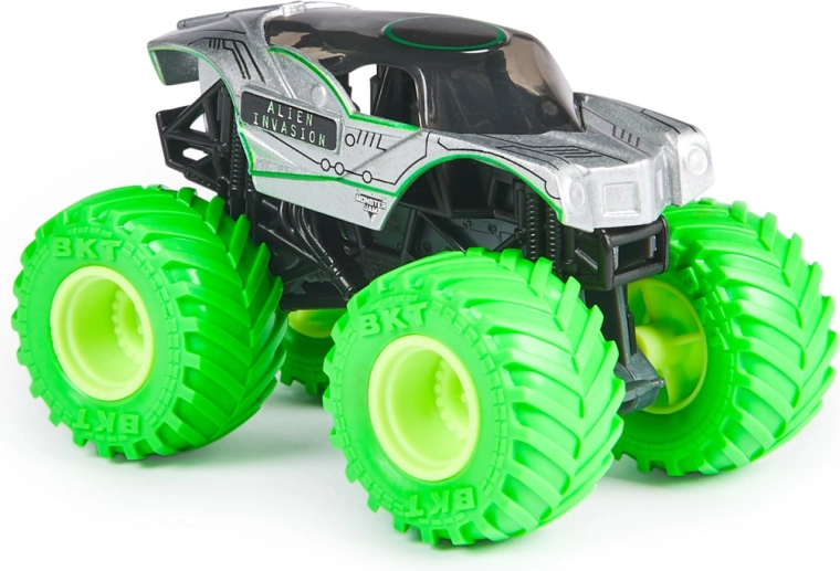 Het assortiment biedt een willekeurige selectie van favoriete kampioenen: El Toro Loco, Grave Digger, Megalodon, Max-D, Blue Thunder, Alien Invasion, Son-Uva Digger, Northern Nightmare en meer. Elk stuk is blisterverpakt en klaar om je collectie en speelgarage te verrijken.