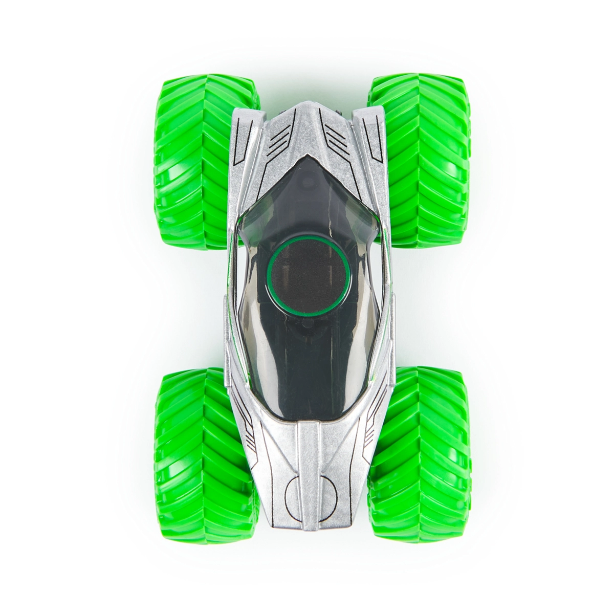 Neongroene BKT-banden en een zilver-zwart carrosserieontwerp vallen direct op. Klaar voor gedurfde sprongen en grenzeloze fantasie.