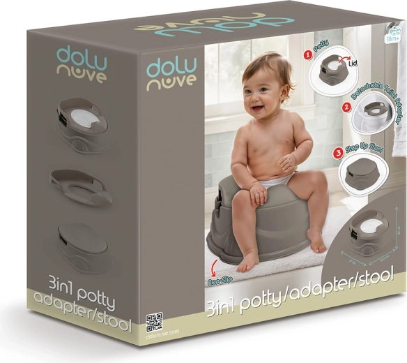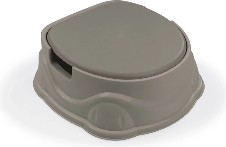 Universeel kinderpotje 3-in-1 in de elegante tint Stone Gray, te gebruiken als potje, wc-verkleiner en krukje. Voorzien van een stabiele antislipbasis, comfortabele zijhandgrepen en eenvoudige reiniging dankzij de uitneembare binnenkom met deksel. Geschikt voor kinderen vanaf 18 maanden, draagvermogen tot 25 kg.