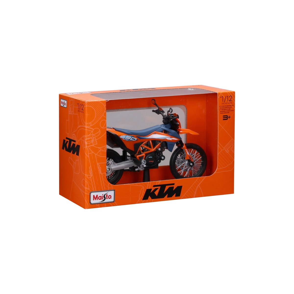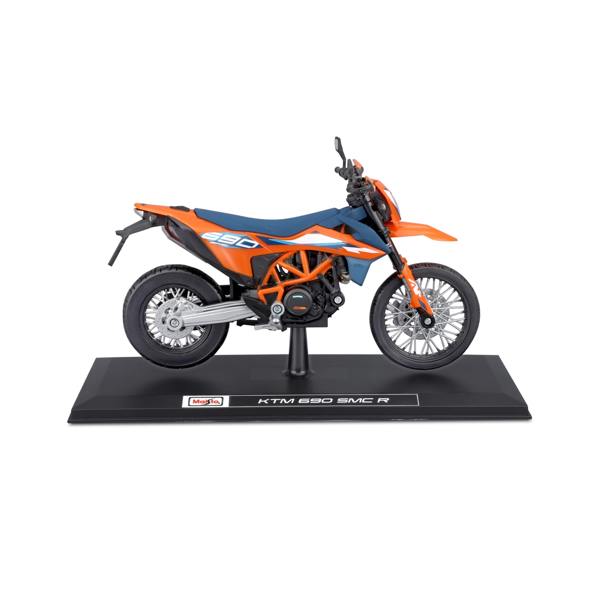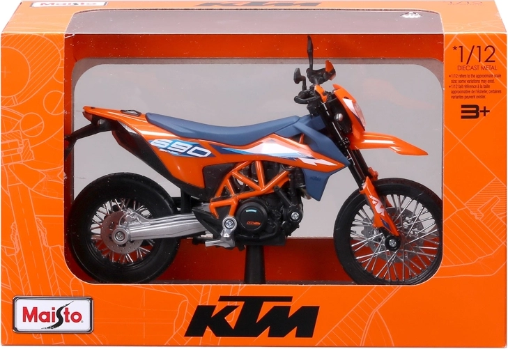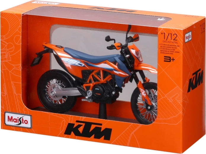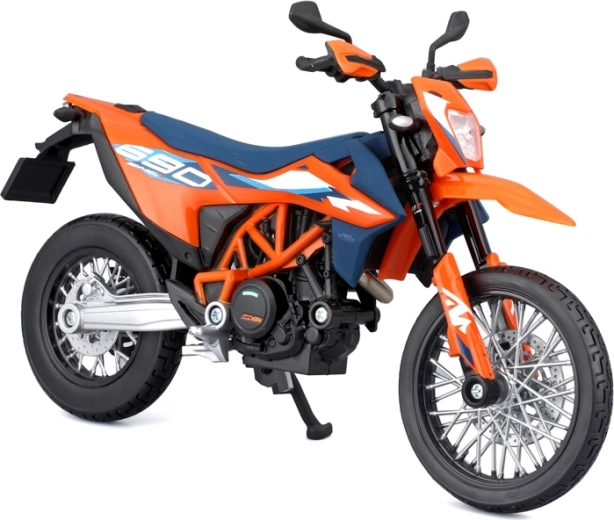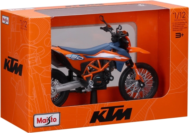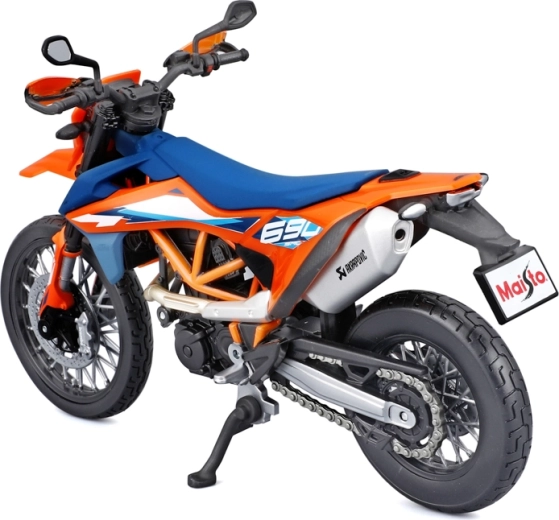 Maisto motorfietsmodel 1:12 KTM 690 SMC R (2023) met standaard – oranje‑blauw