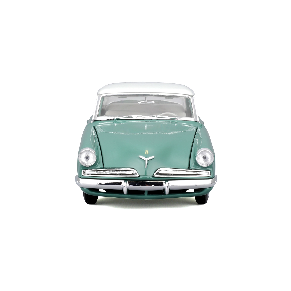 Het iconische model van de 1953 Studebaker Starliner op schaal 1:18 van het merk Maisto overtuigt met zijn realisme en hoogwaardige afwerking. Metalen uitvoering met kunststofdetails, te openen delen, functionerende besturing en vering op alle vier de wielen maken van dit stuk een geweldig verzamelmodel in een elegante groene kleur.