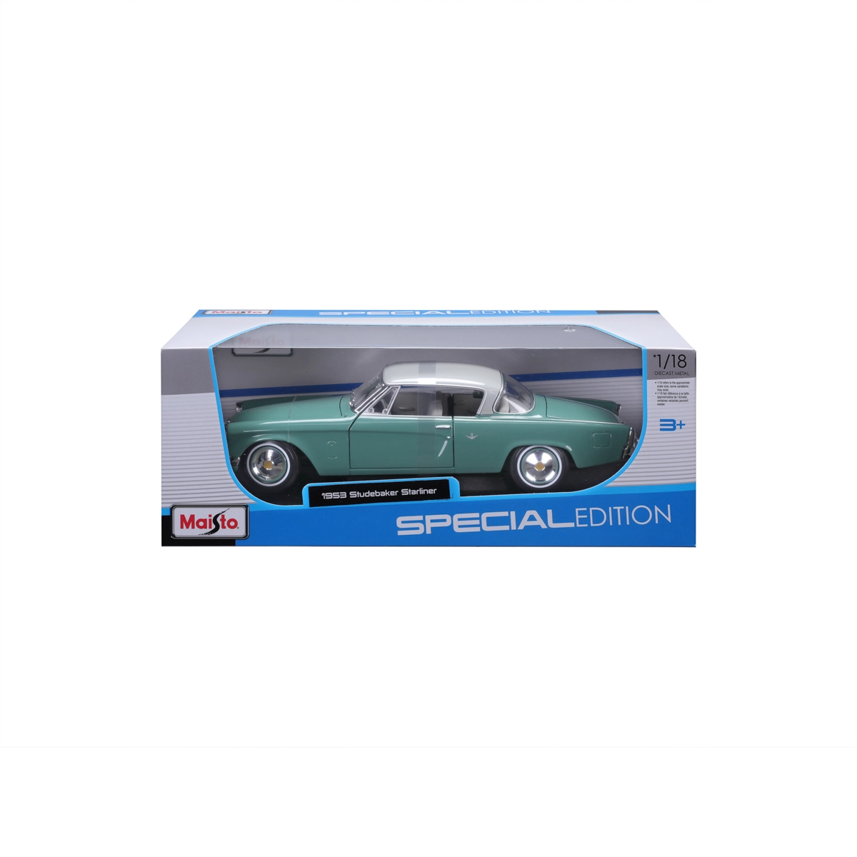 Maisto Special Edition brengt een gedetailleerde weergave van een klassieker uit de Amerikaanse autogeschiedenis – de 1953 Studebaker Starliner. Dankzij de die-cast constructie van gegoten metaal en de precieze details van interieur en exterieur oogt het model uitzonderlijk geloofwaardig. Op schaal 1:18 komt het prachtig tot zijn recht in de vitrinekast van elke verzamelaar en liefhebber van oldtimers.