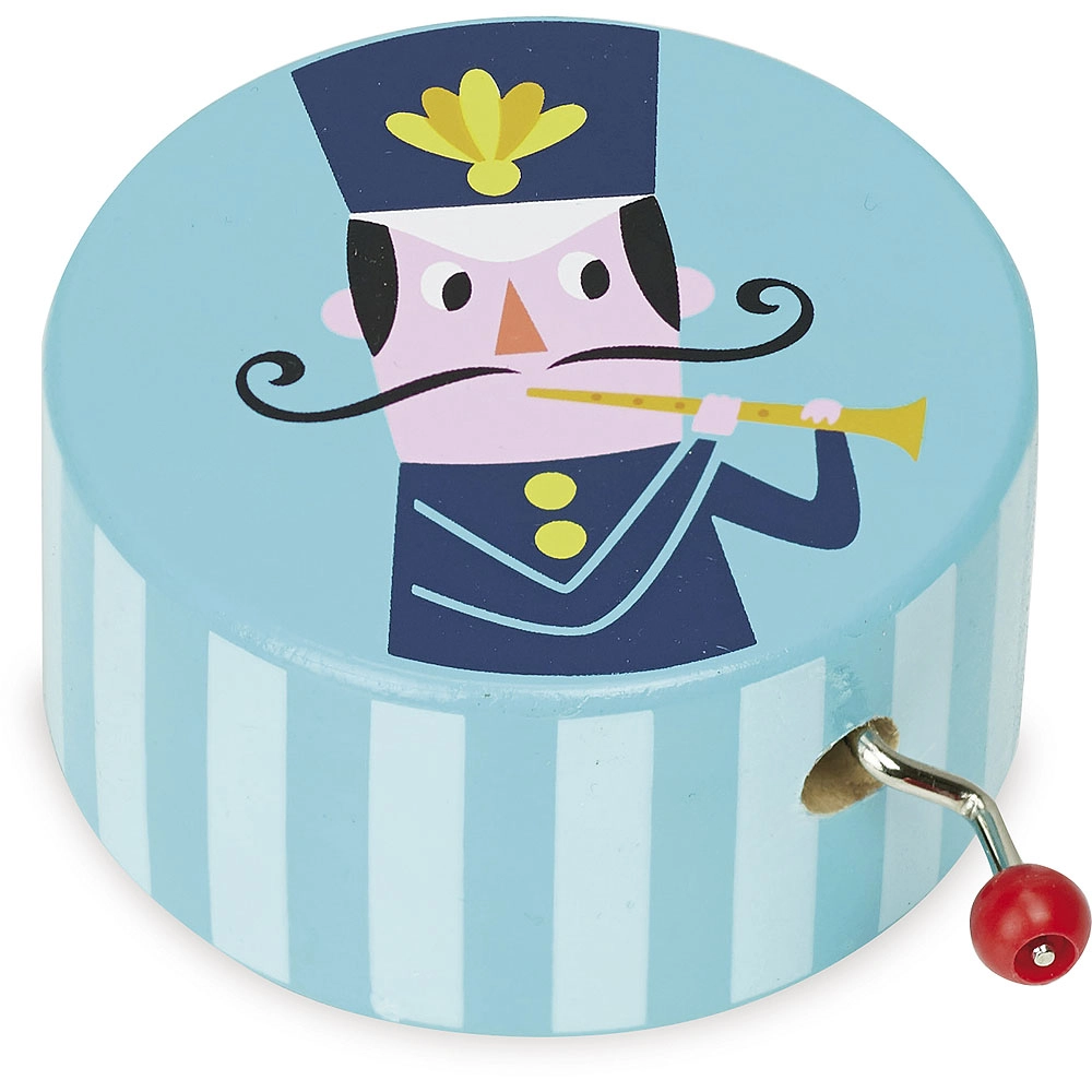 Houten muziekdoosje, 1 stuk. Geïllustreerd door Ingela P. Arrhenius. Belangrijkste kenmerken: speelt een aangename melodie bij het draaien aan de slinger, ontwerp van Ingela P. Arrhenius. De Zweedse kunstenares Ingela Peterson Arrhenius werd geboren in 1967. Kunst en design hebben altijd een plek gehad in haar leven en voordat haar carrière als illustratrice begon, werkte Ingela als artdirector in Stockholm. Daarna studeerde ze reclame- en grafisch ontwerp aan een kunstschool, eveneens in Stockholm. In 1992 begon ze als freelance illustratrice en werkte internationaal in reclame, design, uitgeverij… In het verleden creëerde ze drukpatronen voor stoffen, behang en papierwaren, en werkte ze ook aan verpakkingen, productdesign, woonaccessoires en speelgoed. Haar posters en designspeelgoed zijn over de hele wereld te vinden. Ze heeft een passie voor retrostijl, wat duidelijk te zien is in haar werk en in haar enthousiasme voor typografie en kleur. Ze woont nu in Stockholm met haar man en twee zonen.