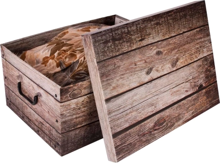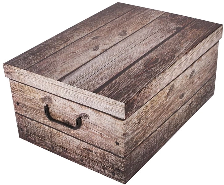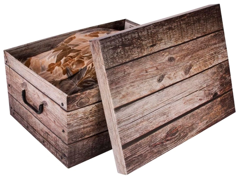 De folie met realistische houtnerf verandert gewoon opbergen in een designaccent. De doos past bij zowel moderne als rustieke interieurs.