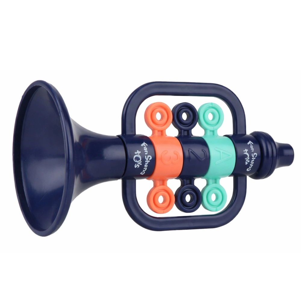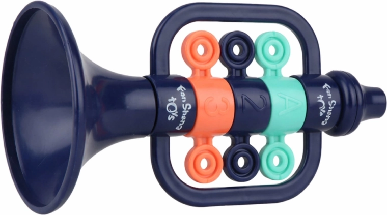 Kleurrijk kindertrompetje met gemakkelijke grip en duurzaam plastic. Stimuleert ademcoördinatie en toonbewustzijn.