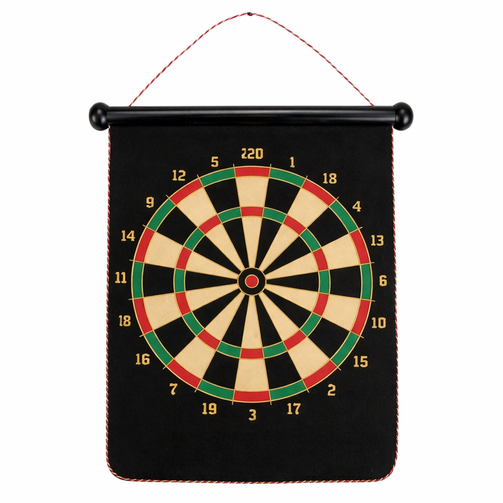 Ideaal voor zowel beginners als gevorderden: de ene zijde biedt een standaard scorebord, de andere doelringen voor gericht mikken. De kleurscheiding van de pijlen (rood en geel) maakt eerlijke duels in duo’s of teams mogelijk. Magneten hechten stevig aan het oppervlak maar beschadigen het meubilair niet.