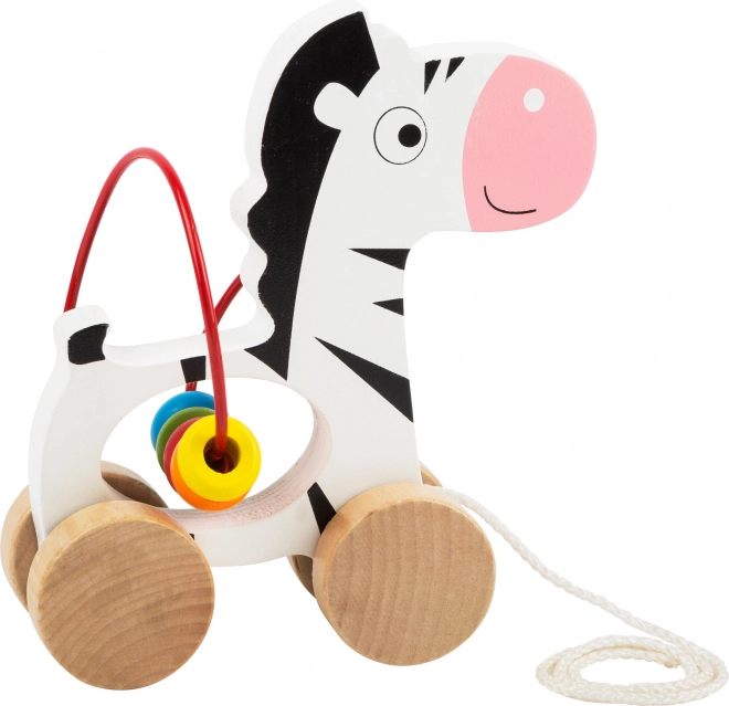 De zebra biedt een speelse uitvoering op wielen met de mogelijkheid tot beweging dankzij het koord. Dankzij de kralenbaan kunnen kinderen hun motoriek verbeteren.