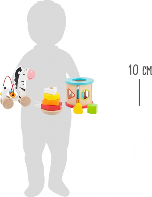 Ontwikkel de vaardigheden van uw kind met deze kleurrijke set houten speelgoed die zowel plezier als educatieve waarde biedt. De set bevat een trekzebra, een stapeltoren en een vormencilinder, die ideaal zijn voor motorische ontwikkeling.