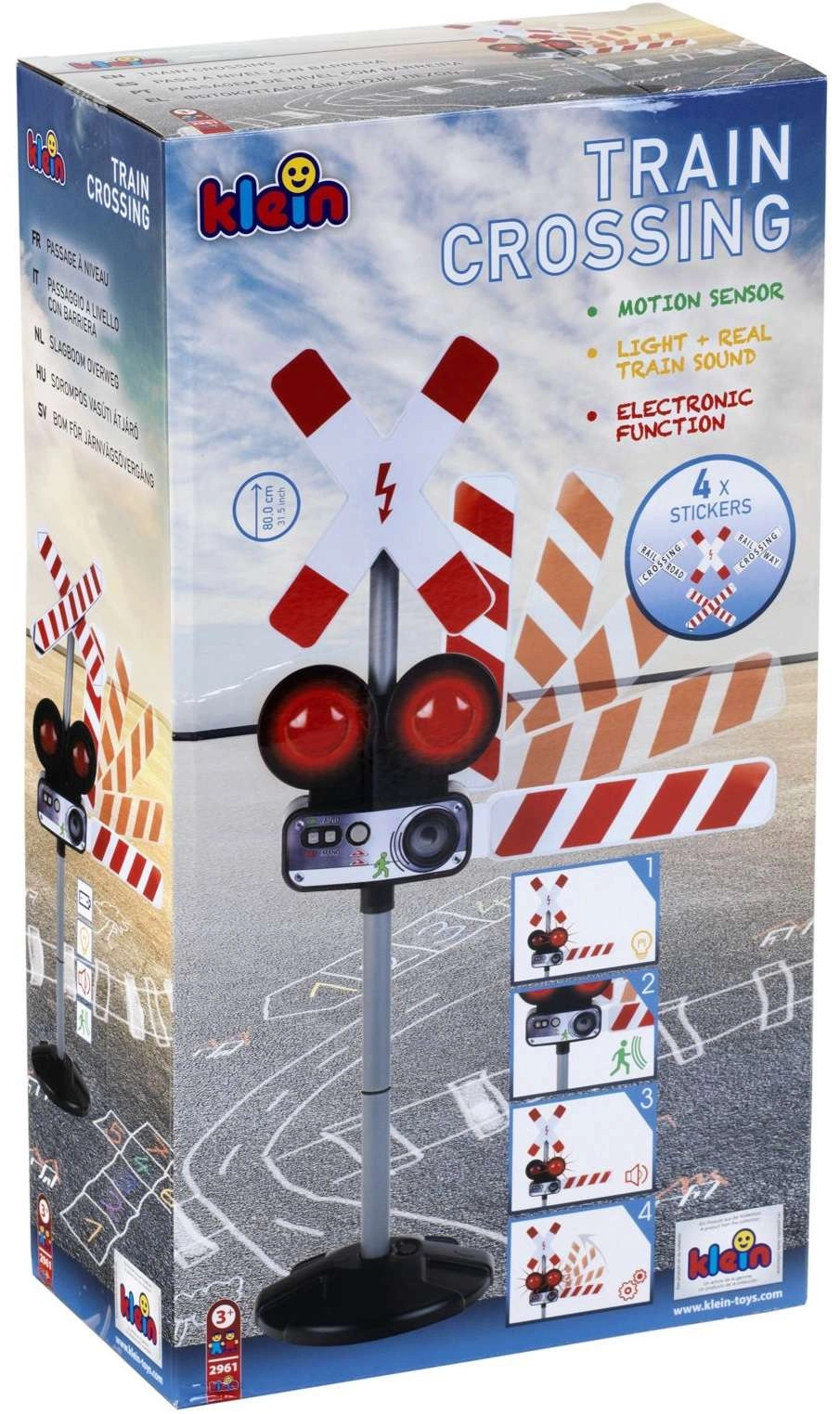 De slagboom gaat omlaag en omhoog zoals bij een echte overgang – stimuleert de fijne motoriek en een realistische verkeersopvoeding.