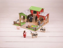 De set is gemaakt van hoogwaardig hout uit verantwoorde bronnen en is compatibel met extra accessoires die je later kunt bijkopen. Realistische elementen zoals de eendenpoel, tractorgarage en weides met beweegbare poorten stimuleren fantasierijk spel, verhalen verzinnen en de ontwikkeling van de fijne motoriek.