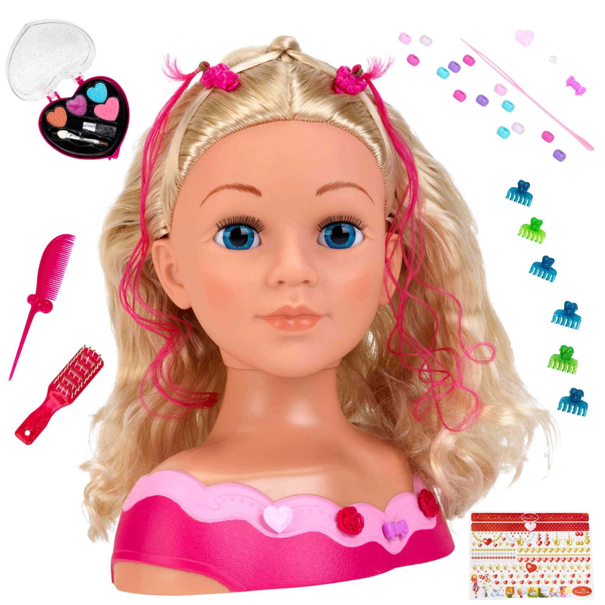 Dankzij de gevarieerde accessoireset proberen kinderen het vlechten van staartjes, het versieren met bonte kralen en clips en experimenten met glinsterende make-up. Spel bevordert concentratie, geduld en oog-handcoördinatie en is bovendien een geweldig cadeautip.