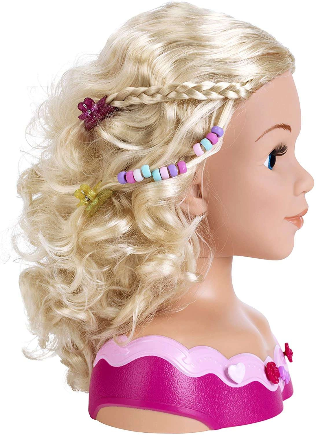De PRINCESS CORALIE stylingskop maakt alle kleine stylisten blij. Realistisch, lang en gemakkelijk doorkambaar haar, blauwe ogen en een stabiele roze voet zorgen voor comfortabel en leuk creëren van kapsels en make-up. De uitgebreide set met borstel, kam, speldjes, kralen en een kindvriendelijk make-uppalet geeft alle ruimte aan de fantasie.