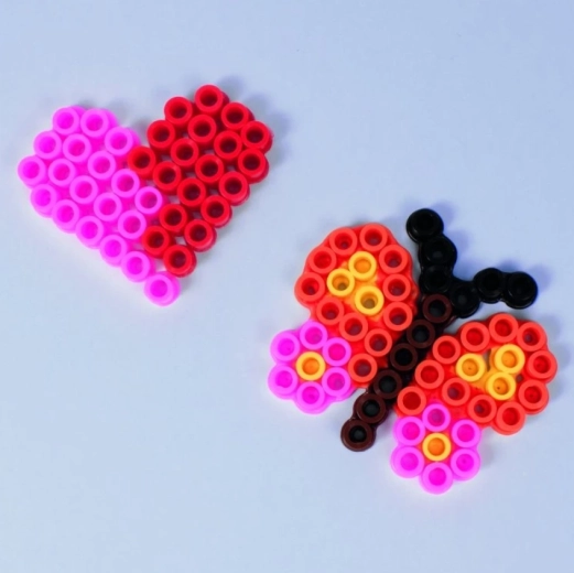 Maak kleurrijke motieven van grote strijkkralen gemakkelijk en overzichtelijk. De transparante PLAYBOX-plaatjes in de vorm van een vlinder en een hart zijn ideaal voor zowel beginners als gevorderden. Dankzij de duidelijk geordende pinnetjes en de compatibiliteit met kralen Ø 9 mm is het leggen van patronen intuïtief en leuk.