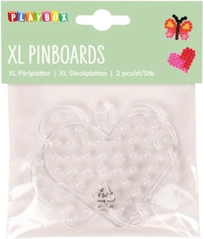 Transparante PLAYBOX onderplaten voor strijkkralen met een diameter van 9 mm maken creatief knutselen gemakkelijk voor zowel kinderen als volwassenen. Dankzij de vormen vlinder en hart maak je eenvoudig prachtige afbeeldingen, patronen en originele decoraties. De platen zijn duurzaam, herbruikbaar en werken door hun transparantie uitstekend samen met sjablonen.