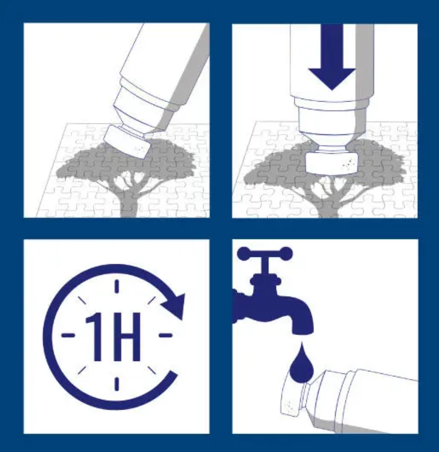 Eén fles van 220 ml dekt een oppervlak tot 1,5 m² – dat komt bijvoorbeeld overeen met 8 puzzels van 500 stukjes of 4 puzzels van 1000 stukjes. De snelle droogtijd van ongeveer 1 uur maakt vroegtijdig inlijsten en tentoonstellen van je werk mogelijk.