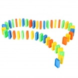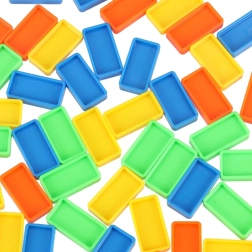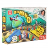 Inhoud van de verpakking: 126× dominostenen (4 kleuren), 2× vliegtuig met lanceerder, baandelen, 2× knikker, 1× figuurtje, 12× dominostandaard, 52× educatieve stickers (letters, cijfers, wiskundige tekens).