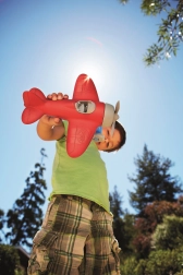 De draaibare propeller, wieltjes en het lichte design stimuleren fantasie en bewegingsspel, zowel in de tuin als in de speelkamer.