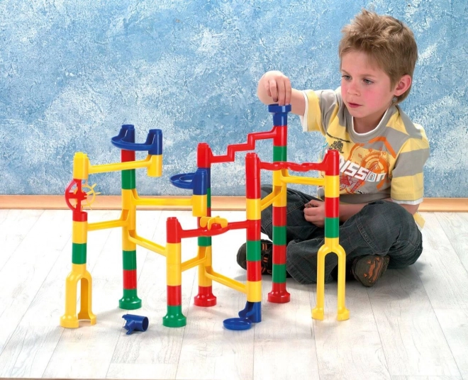 Deze knikkerbaan van het merk LENA biedt urenlang plezier dankzij zijn variabiliteit en vindingrijkheid. Het is ideaal voor kinderen vanaf drie jaar en biedt veel mogelijkheden om banen naar eigen fantasie te bouwen.