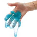 De blauwe, glitterende slijm is zacht en kneedbaar, ideaal voor tactiele spelletjes en het oefenen van fijne motoriek.