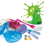 De set bevat diverse materialen die het experimenteren leuker maken. Van prachtige glitterige slijm tot leuke reageerbuisjes.