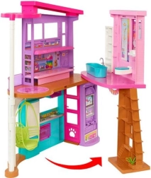 Barbie Vakantiehuis is de bron van eindeloos plezier! Met twee niveaus en zes speelruimtes, inclusief slaapkamer, badkamer, keuken en woonkamer, kun je je eigen verhalen maken. Bevat meer dan 30 elementen voor interactieve spelervaring.