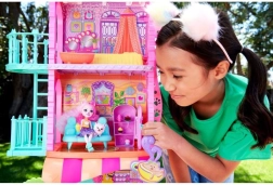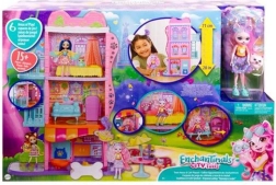 Stap binnen in de wereld van ENCHANTIMALS met een betoverend stads huis van 70 cm hoog en drie verdiepingen vol speelmogelijkheden. Er wachten een café met patio, een woonkamer met keuken, een slaapkamer en een dakterras met zwembad; ook een balkon, een brandtrap en een openslaande deur met dierenluikje ontbreken niet. Inclusief pop Palmer Pomeranian (15 cm), haar hondje Pommy en meer dan 15 accessoires voor eindeloze fantasie en creatief spel. Meerdere speelzones, rijke accessoires en een sprookjesachtig design zullen iedere kleine verhalenverteller blij maken.
