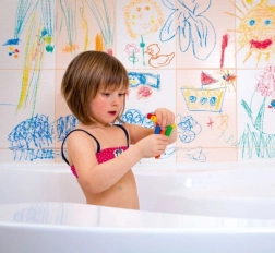 Ontdek de eindeloze mogelijkheden van creativiteit met badkrijtjes. Kinderen kunnen tekenen direct op het bad of de tegels en zo prachtige kunstwerken creëren tijdens het baden. Ouders kunnen gerust zijn - alle tekeningen zijn gemakkelijk afwasbaar en de krijtjes zijn volledig veilig.