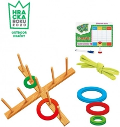 Een leuk en competitief bewegingsspel voor kinderen en volwassenen dat nauwkeurigheid, snelheid en lichaamsconditie ontwikkelt. Probeer 6 spelvarianten met werpringen op een houten kruisstandaard, speel buiten en binnen en geniet op elk moment van gezinsplezier. Inclusief een afwisbaar bord, stift, zandloper en een Tsjechisch-Slowaakse handleiding.