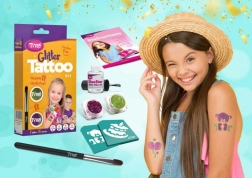 Creëer een unieke sfeer op het verjaardagsfeest met de glinsterende tatoeages TyToo Happy Birthday. De set bevat 15 sjablonen met vrolijke motieven en 2 kleuren glitter die op de huid ongeveer 8–18 dagen blijven zitten. De tatoeages zijn waterbestendig, maar kunnen eenvoudig verwijderd worden met alcohol of babyolie. Je kunt de afgewerkte designs extra versieren met zelfklevende steentjes of wiebeloogjes voor een nog opvallender effect.