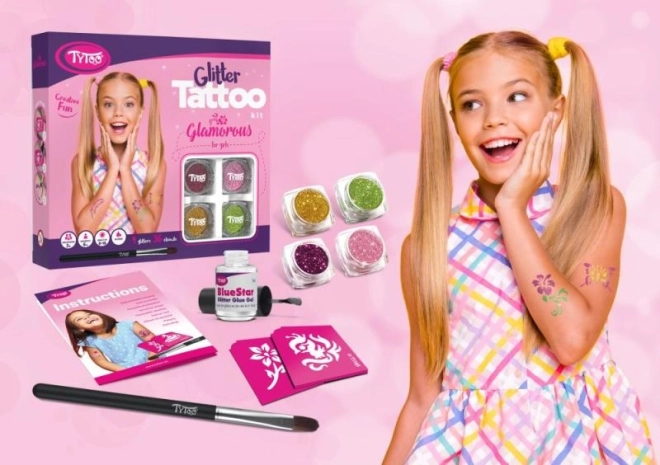 Ontdek creatieve plezier met de grote set glitsertattoos TyToo Glamorous. Bevat 36 populaire meisjesmotieven en 4 kleuren glitter voor eindeloze combinaties. De tattoos zijn waterbestendig, blijven op de huid gemiddeld 8–18 dagen zitten en zijn gemakkelijk te verwijderen met alcohol of babyolie. Inclusief zelfklevende steentjes en wiebeloogjes voor originele versiering.