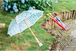 Met de paraplu met beermotief wordt elke regenachtige dag een plezier. Uniek ontwerp van Shinzi Katoh, bekend om zijn schattige en vrolijke patronen, brengt vreugdevolle momenten in het leven van uw kinderen. Deze in Frankrijk vervaardigde paraplu heeft een metalen frame voor verhoogde duurzaamheid en een houten handgreep voor comfortabel vasthouden.
