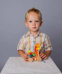 Dit multifunctionele speelgoed in de vorm van een giraf vermaakt kinderen zowel bij het trekken als bij het schuiven van kralen over metalen draden. Op speelse wijze ontwikkelt het fijne en grove motoriek, hand-oogcoördinatie en helpt het bij de eerste stapjes in het herkennen van kleuren.