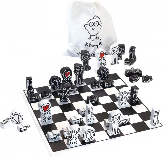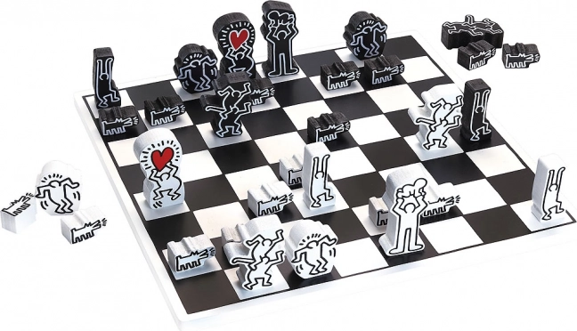 Ontdek het iconische houten schaakspel met grafisch ontwerp van KEITH HARING – een combinatie van klassiek spel en moderne kunst. Stijlvolle zwart-witte stukken met rode accenten, hoogwaardige afwerking en een praktische opbergzak maken deze set tot een geweldig cadeau én een originele decoratie.