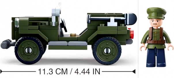 De set bevat 111 onderdelen en een figuur in militaire kleding, wat het mogelijk maakt een gedetailleerd en realistisch model te maken.